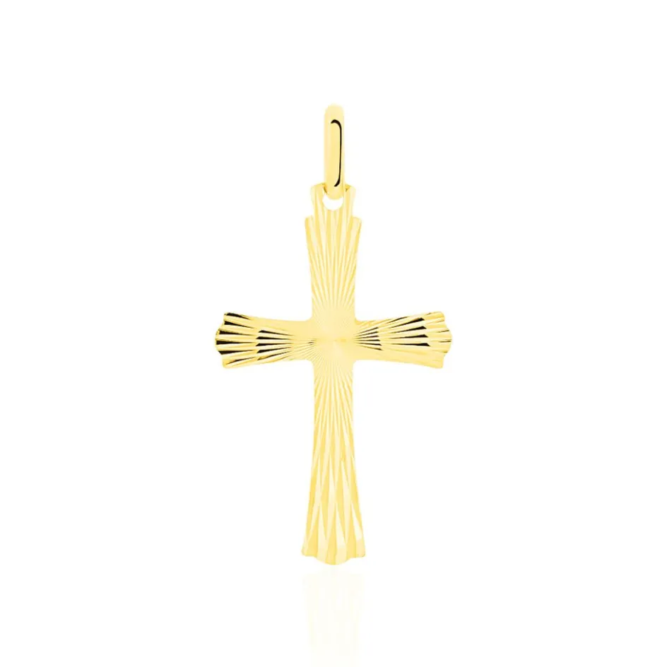 Pendentif Or Jaune 375/1000 Motif Croix Ciselee