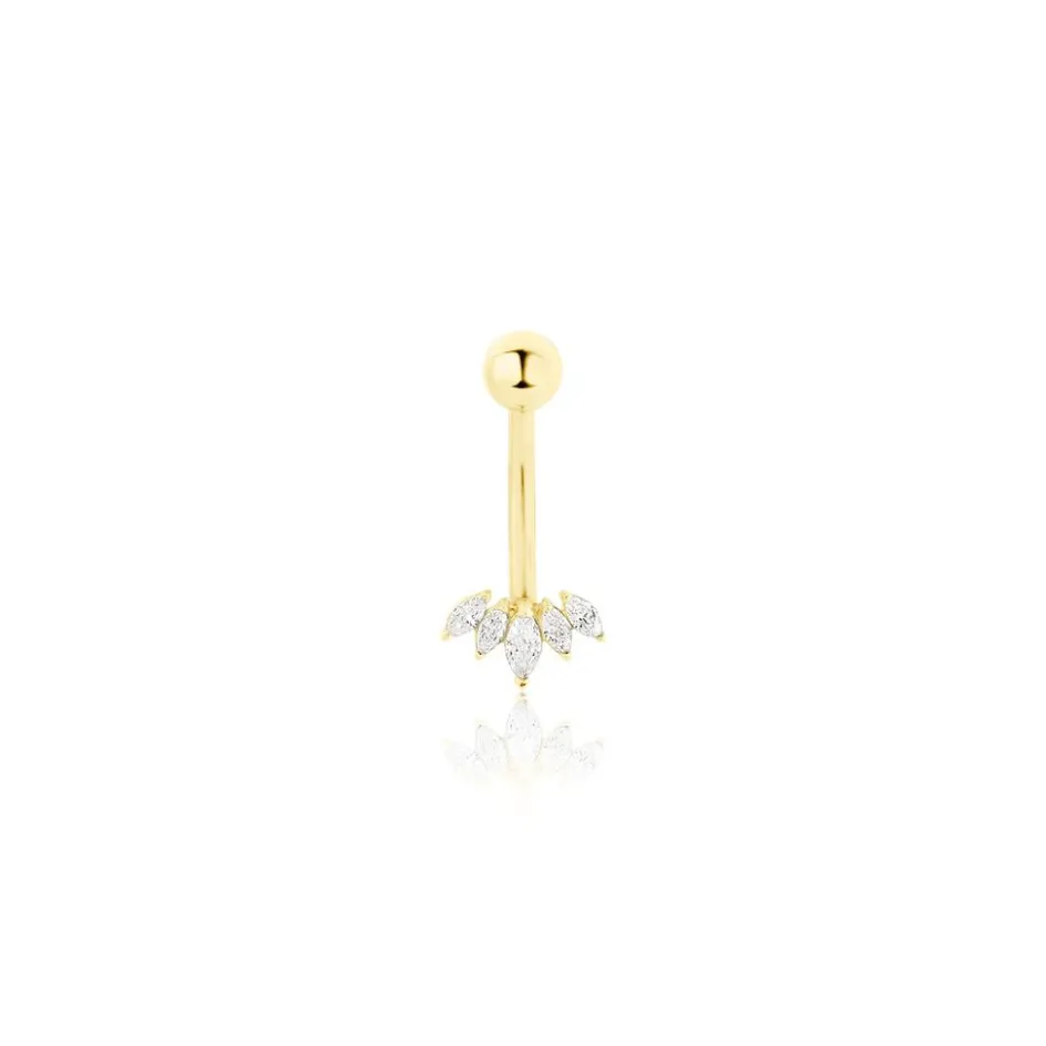 Piercing De Nombril Or Jaune 375/1000 5 Amandes Oxydes De Zirconium Navette Sertis Griffes