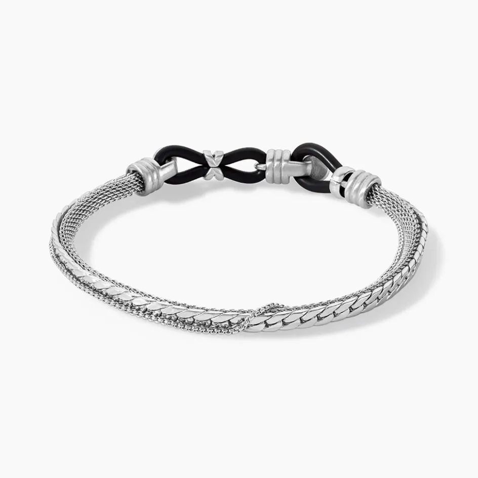 Bracelet Jourdan Arpad Acier Inoxydable Dore Et Caoutchouc Noir 20cm+1cm Jh150202b