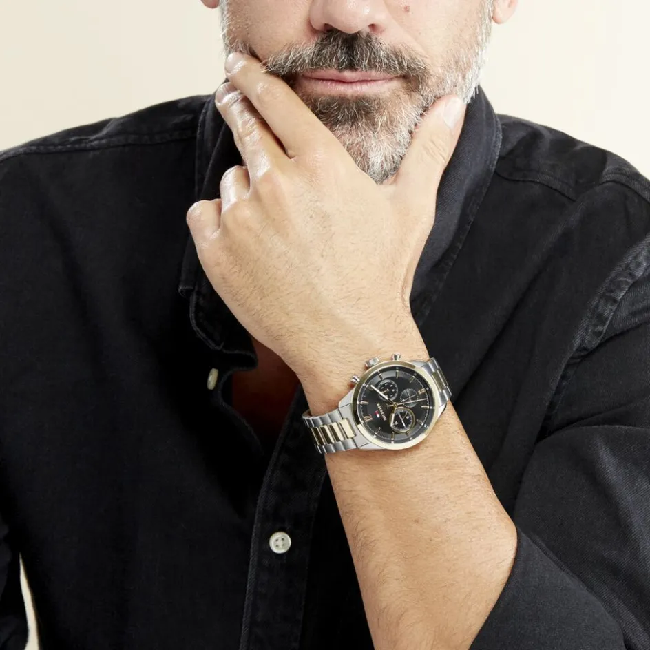 Montre Tommy Hilfiger Matthew Acier Blanc Ronde Multifonctions 44mm Fond Noir Bracelet Acier Jaune / Blanc 1791944