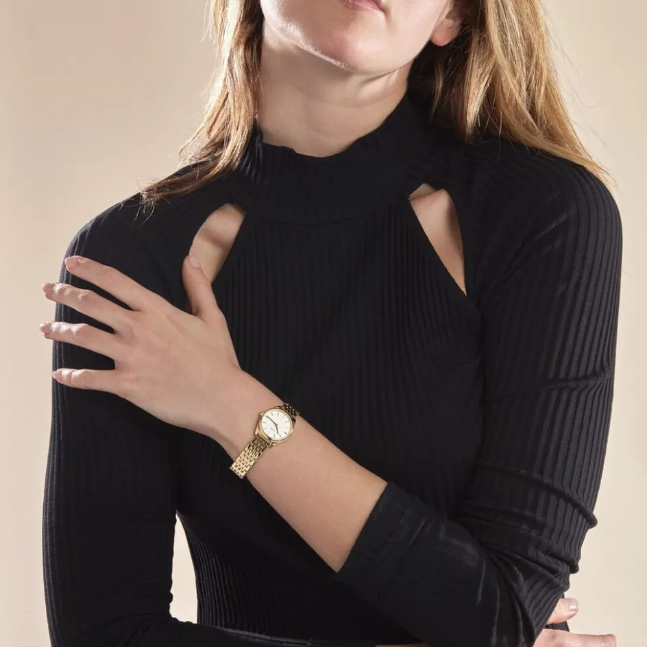 Montre Cluse Féroce Mini Acier Doré Ronde Quartz 25mm Fond Blanc Bracelet Acier Doré Cw11705