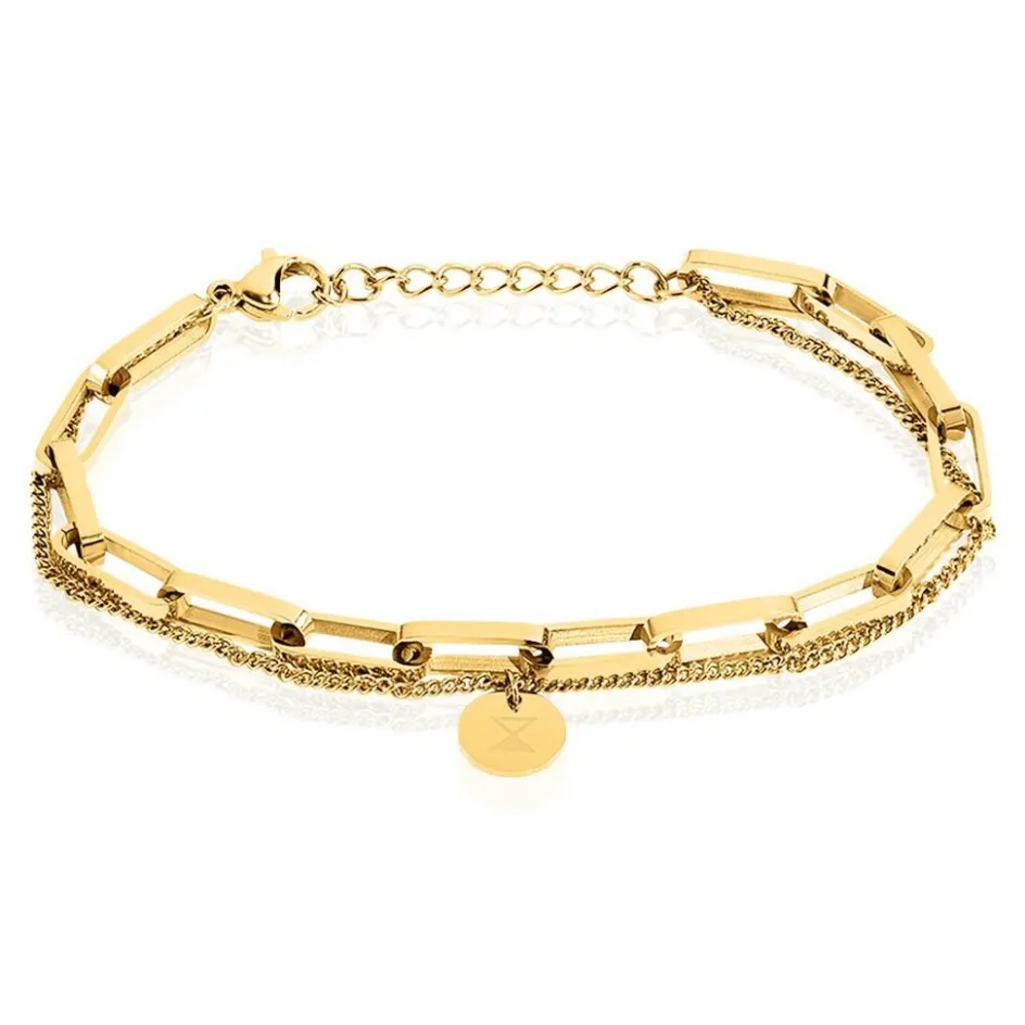 Coffret De Montre Codhor Amele Alliage Doré Ronde Quartz 36mm Fond Doré Bracelet Milanais Acier Doré Et Bracelet Acier Doré Double Chaîne 16+3cm P100964-e