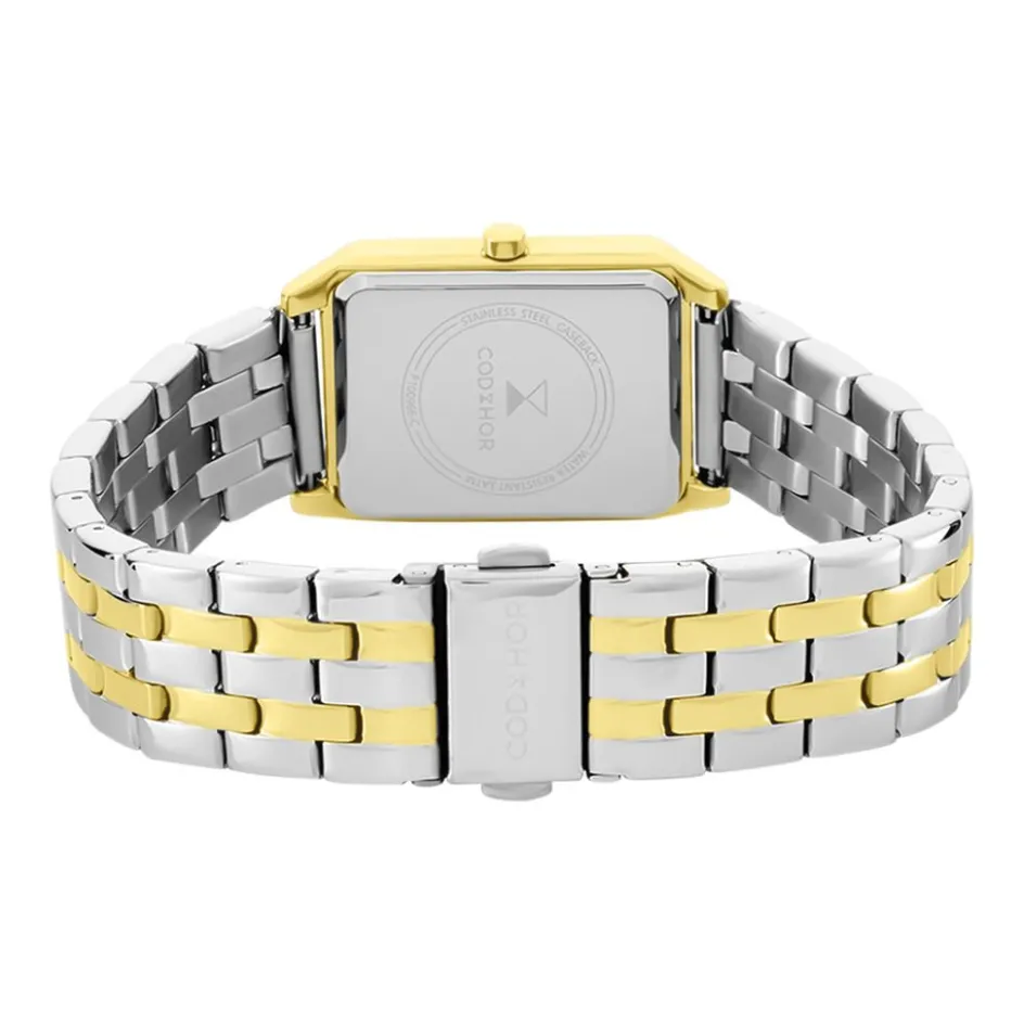 Montre Codhor Arianne Alliage Dore Rectangulaire Quartz 24x36mm Fond Blanc Bracelet Acier Bicolore P100966-c
