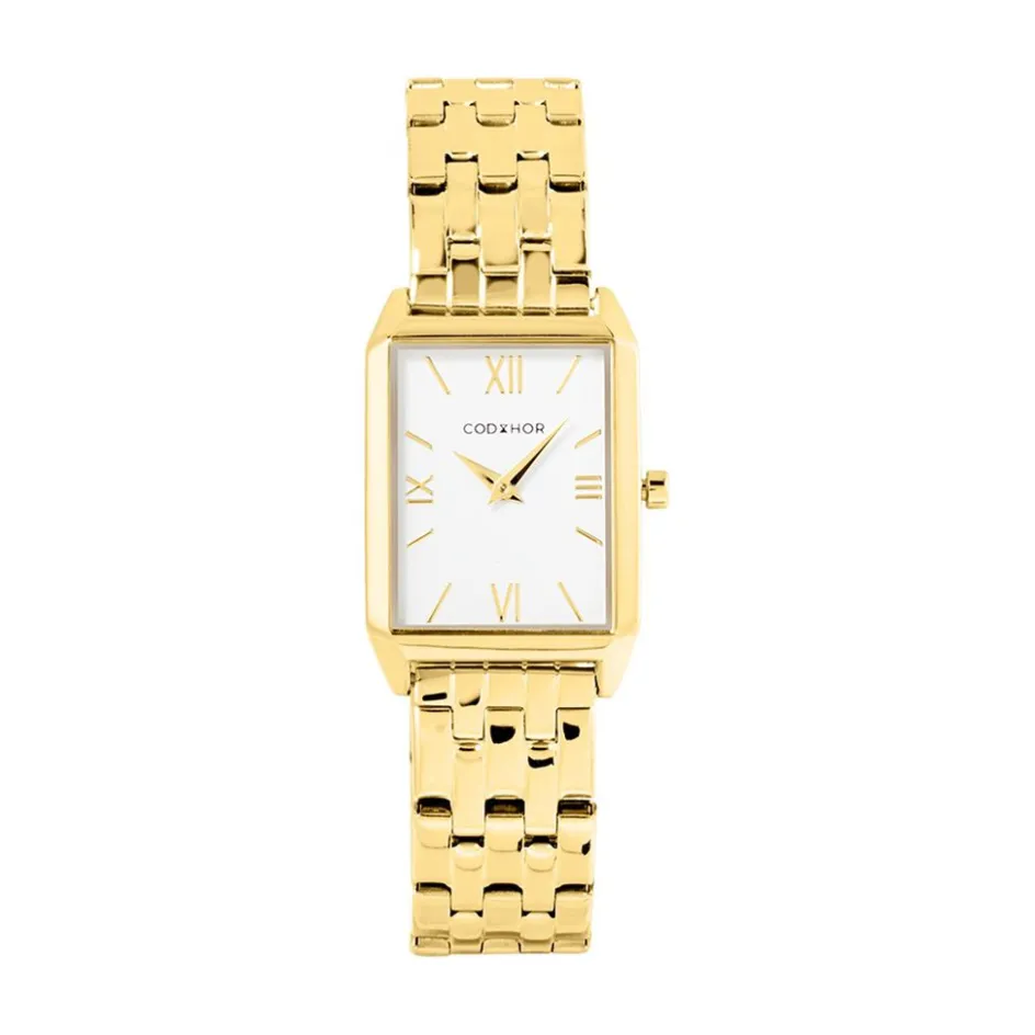 Montre Codhor Arianne Alliage Doré Rectangulaire Quartz 24x36mm Fond Blanc Bracelet Acier Doré P100966-b