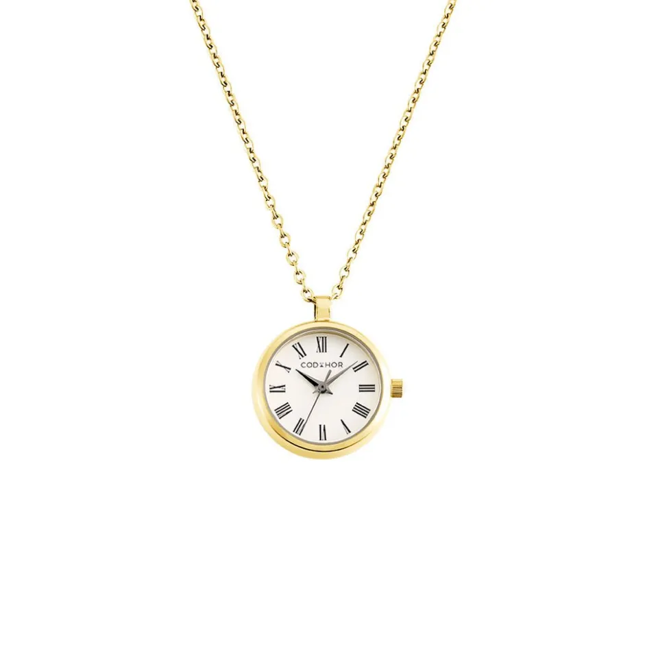 Montre Codhor Collier Felicie Alliage Dore Ronde Quartz 22mm Fond Blanc Chaine Acier Dore Ch.5258s/01m
