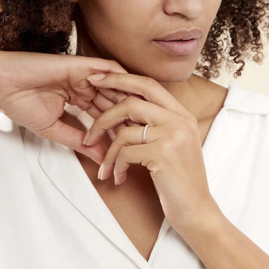 Alliance Or Blanc 375/1000 Demi Tour Diamants Serti Griffes 0.306cts