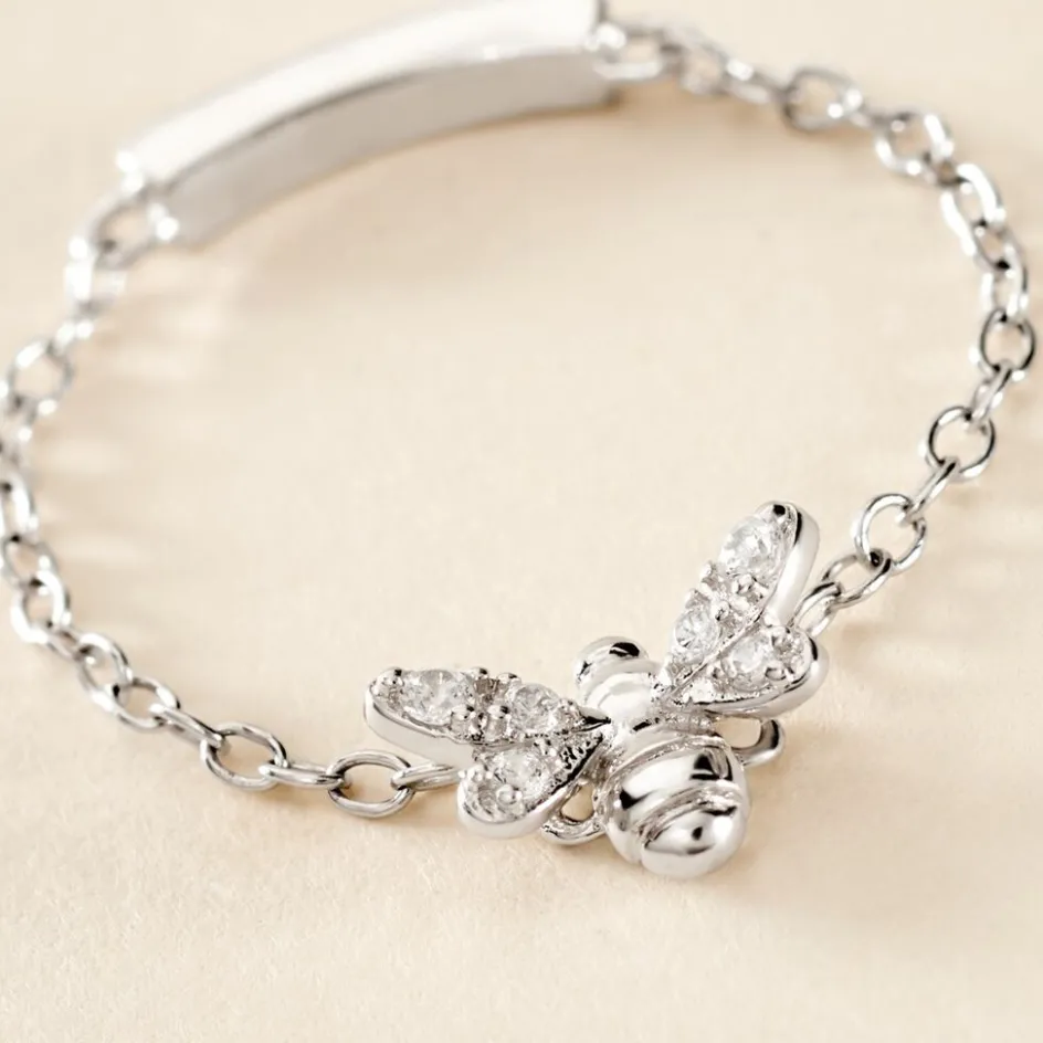 Bague Chaîne Argent Blanc 925/1000 Abeille Pavage Oxydes De Zirconium