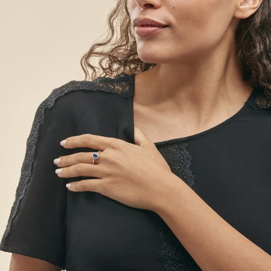 Bague Or Blanc 375/1000 Saphir Simple Entourage Diamants Pm