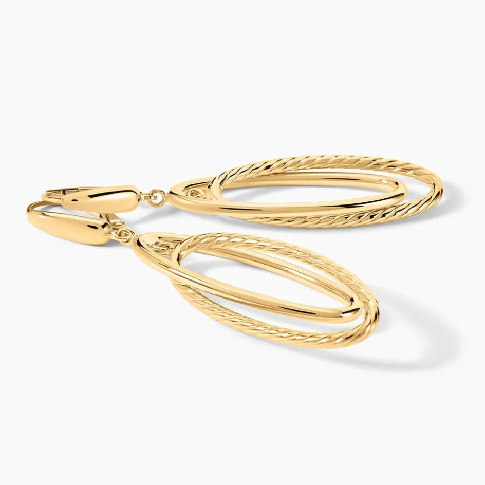 Boucles D’Oreilles Or Jaune 750/1000 Double Maillon Oval Ajoure Lisse Et Strie Fermoir Dormeuse