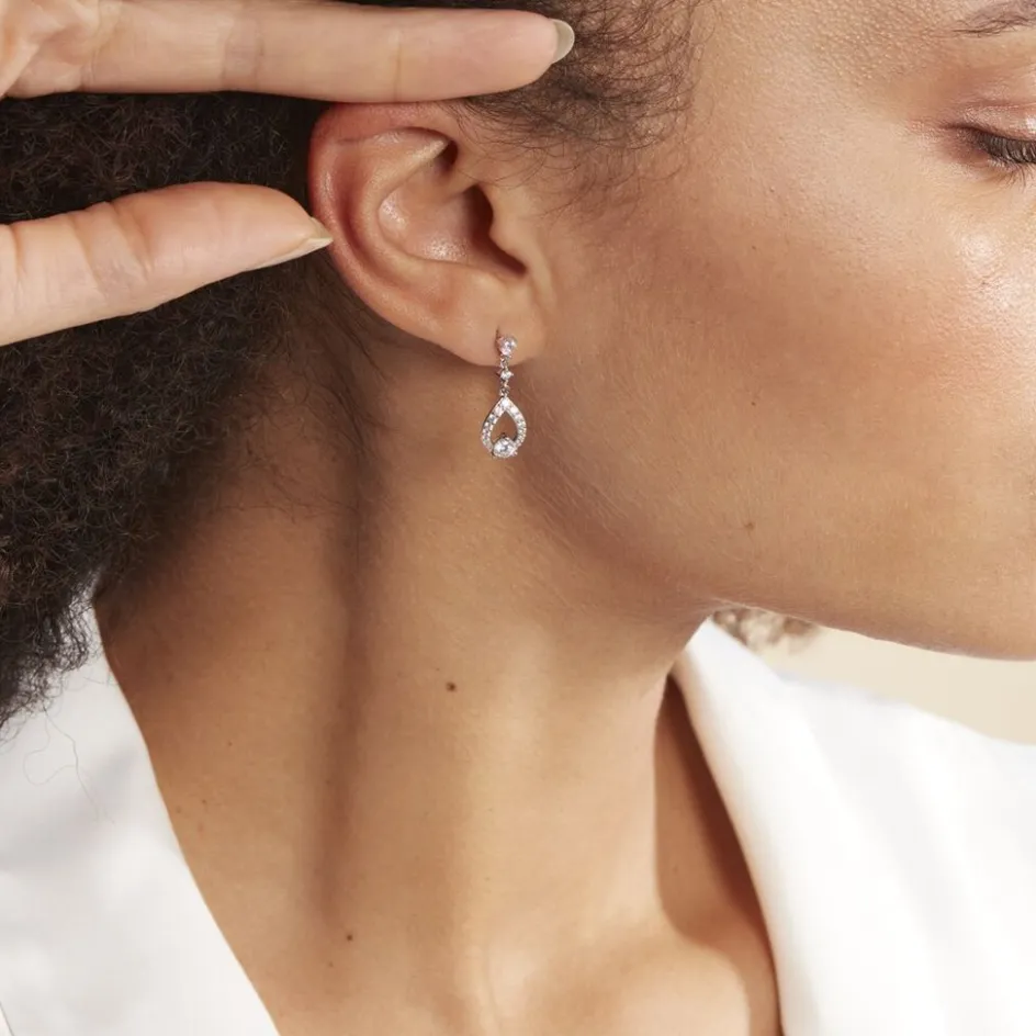 Boucles D’oreilles Argent Blanc 925/1000 Gouttes Creuses + Oxydes De Zirconium