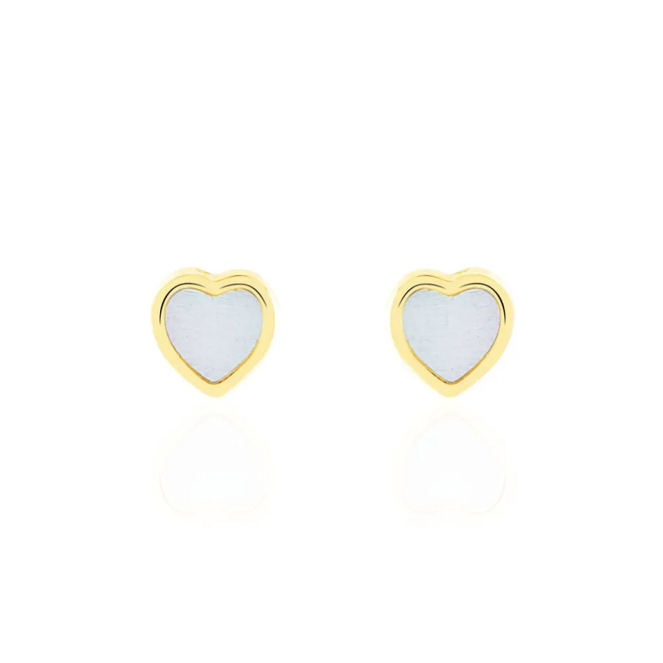 Boucles D’oreilles Or Jaune 375/1000 C艙ur Nacre