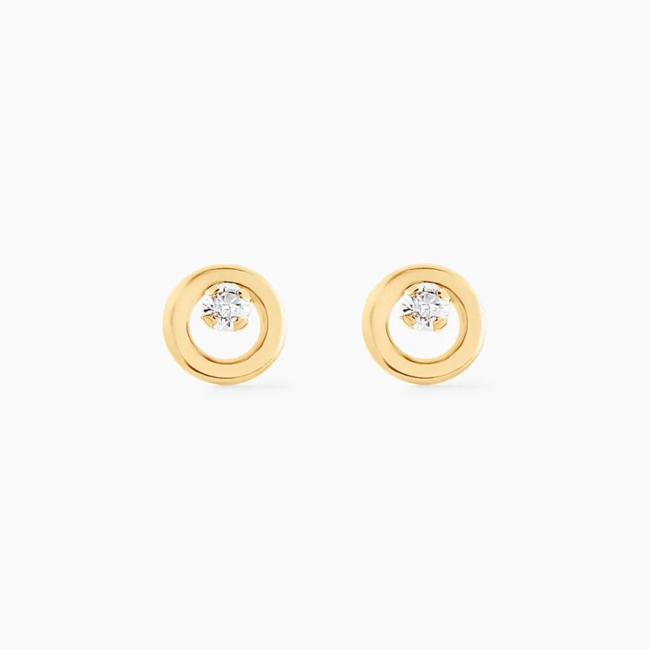 Boucles D’oreilles Or Jaune 375/1000 Puces Oxydes De Zirconium