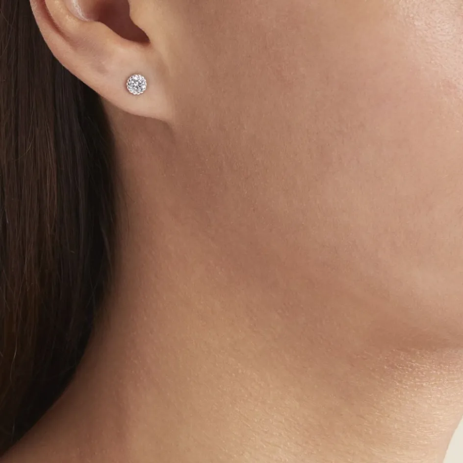 Boucles D’oreilles Or Blanc 375/1000 Puces Oxydes De Zirconium Serti Clos