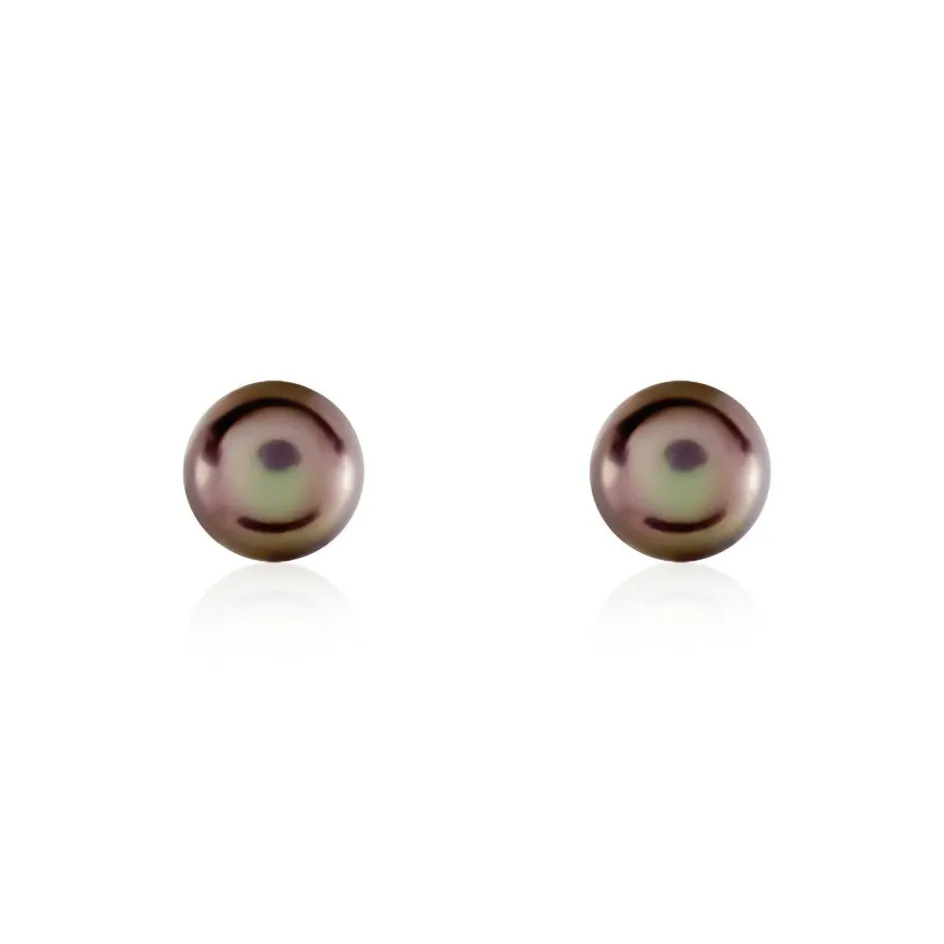 Boucles D’oreilles Or Jaune 375/1000 Perles De Culture Bouton Teintées Noires 7/7.5mm