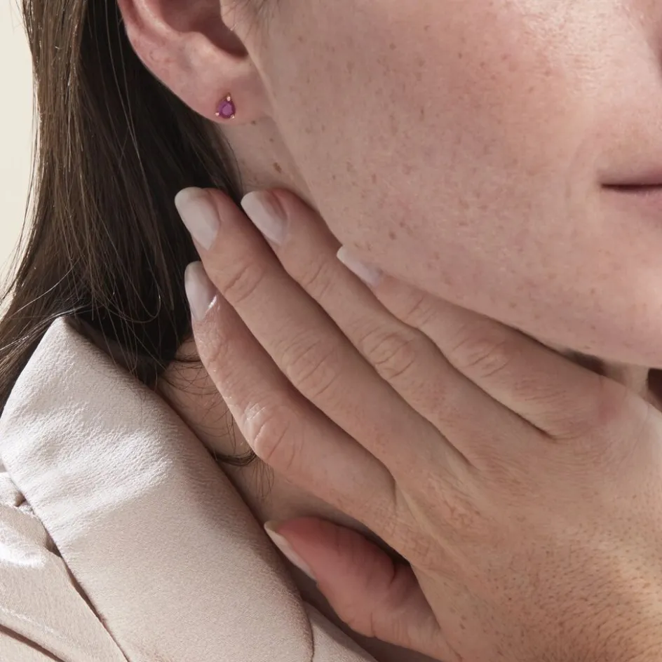 Boucles D’oreilles Puces Or Jaune 375/1000 Rubis Poire Serti Griffes 0.7ct