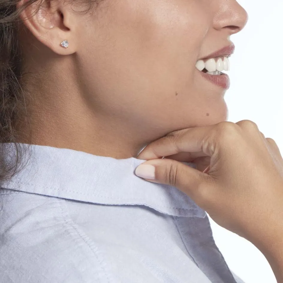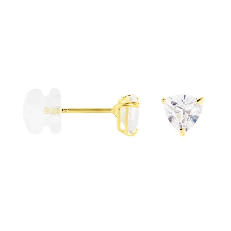 Boucles D’oreilles Puces Or Jaune 375/1000 Triangles Serti Griffes Oxydes De Zirconium 5x5mm