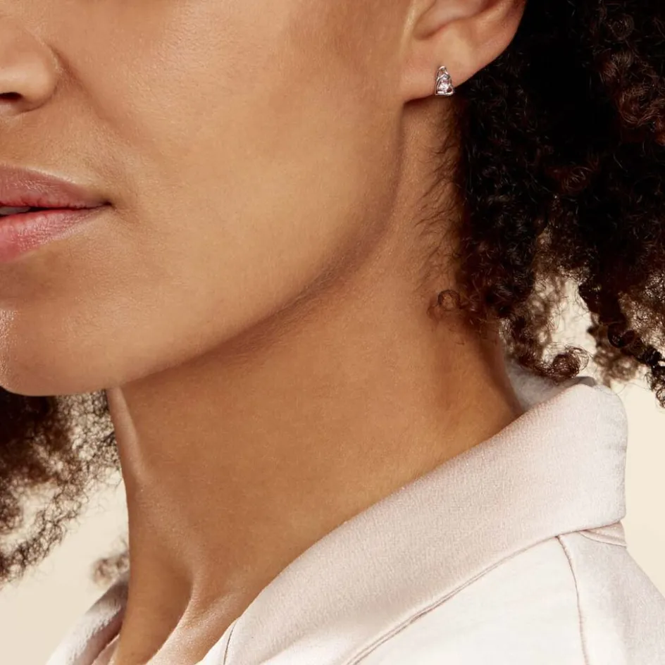 Boucles D’oreilles Argent Blanc 925/1000 Double Coeur Oxydes De Zirconium