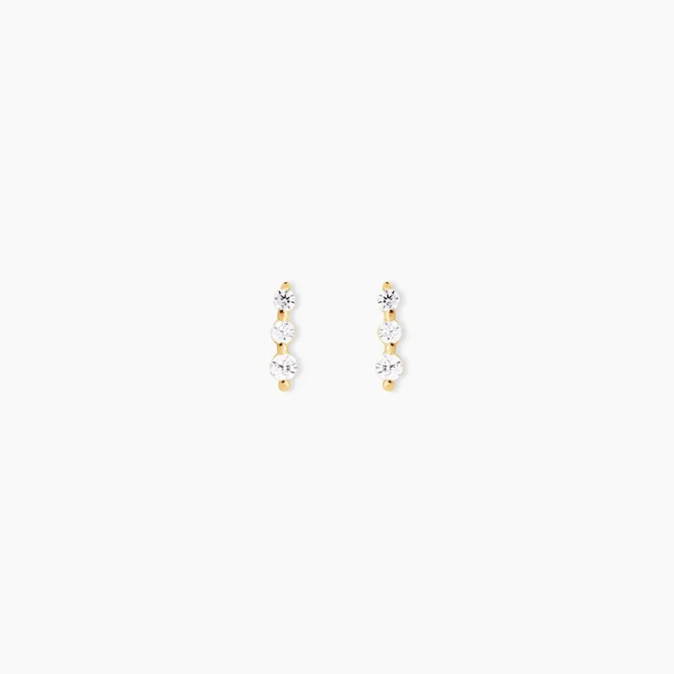 Boucles D’oreilles Puces Or Jaune 375/1000 Barette 3 Oxydes De Zirconium Sertis 2 Griffes