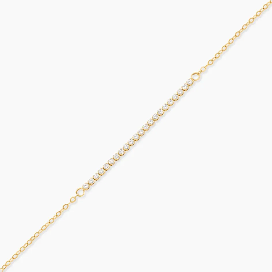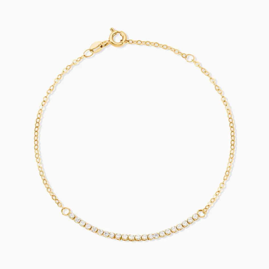 Bracelet Or Jaune 375/1000 Barrette Oxydes De Zirconium Maille Forcat 16+2Cm