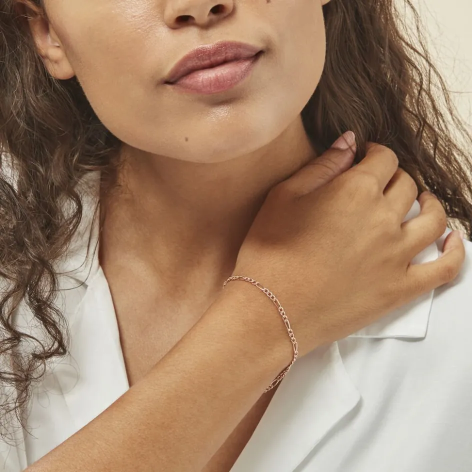 Bracelet Or Rose 375/1000 Maille Alternee 1/3 Largeur 2.5mm 18cm