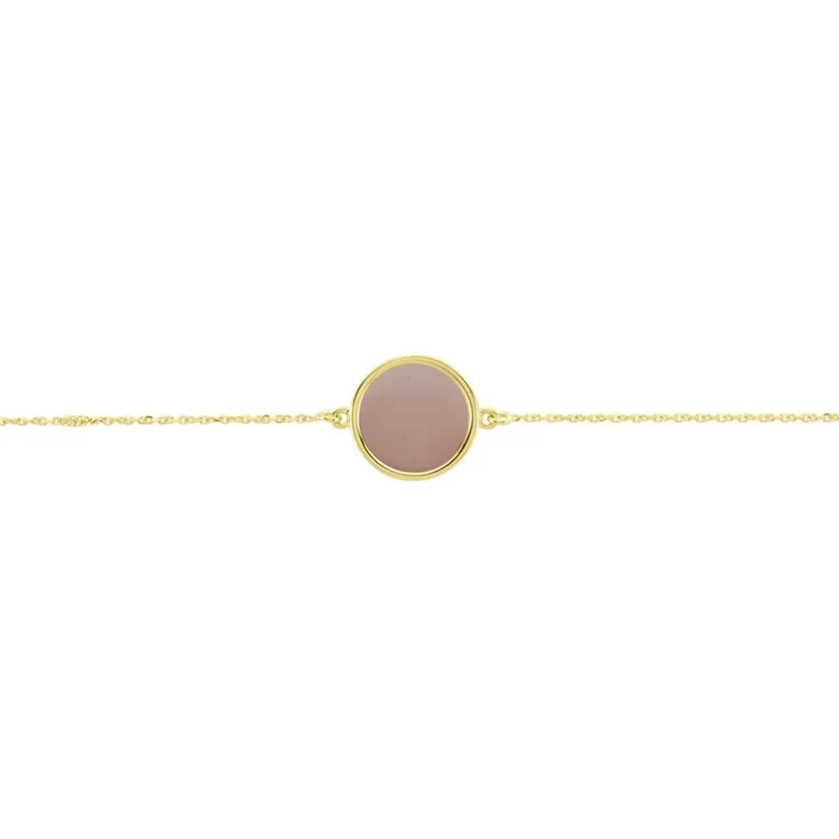 Bracelet Or Jaune 375/1000 Cercle Calcedoine Abricot Maille Jaseron 16+2cm