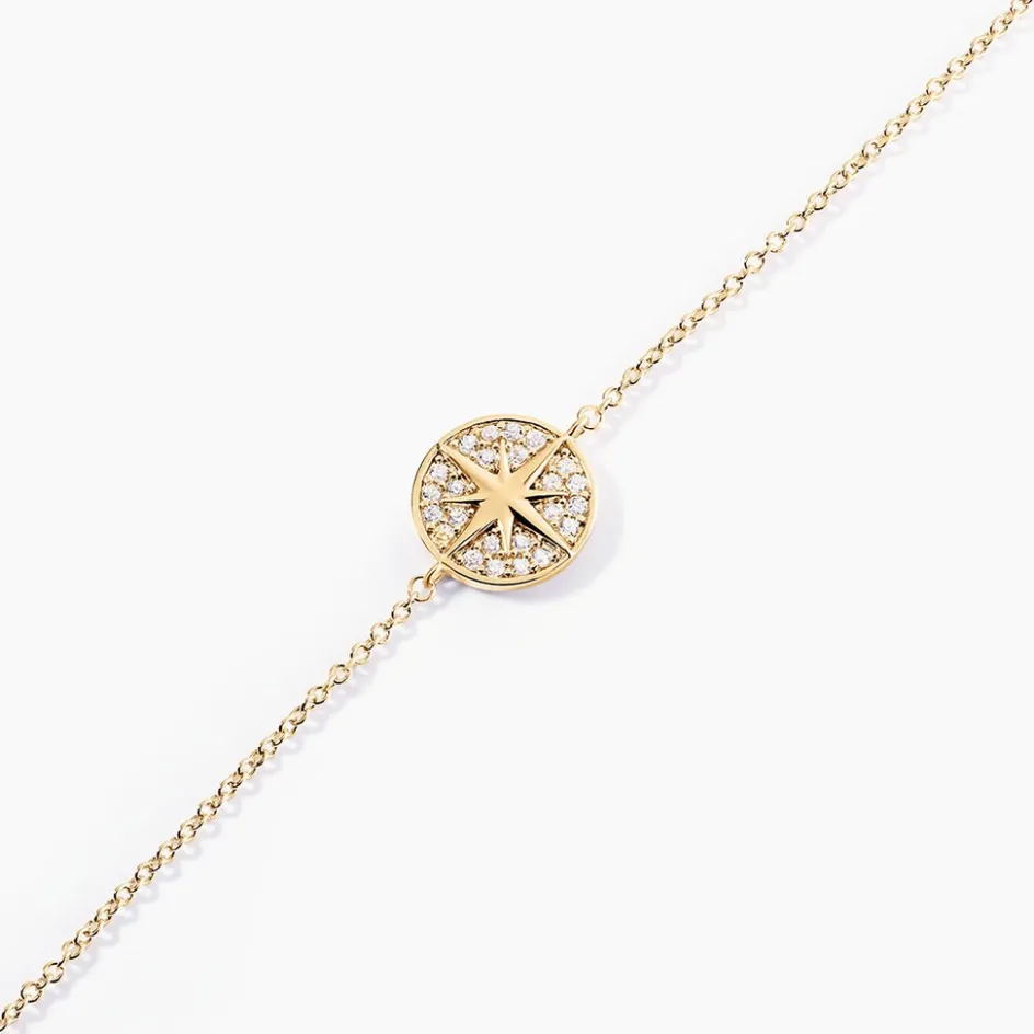 Bracelet Plaqué Or Jaune Forme Pastille Etoile Berger Oxydes De Zirconium 18cm