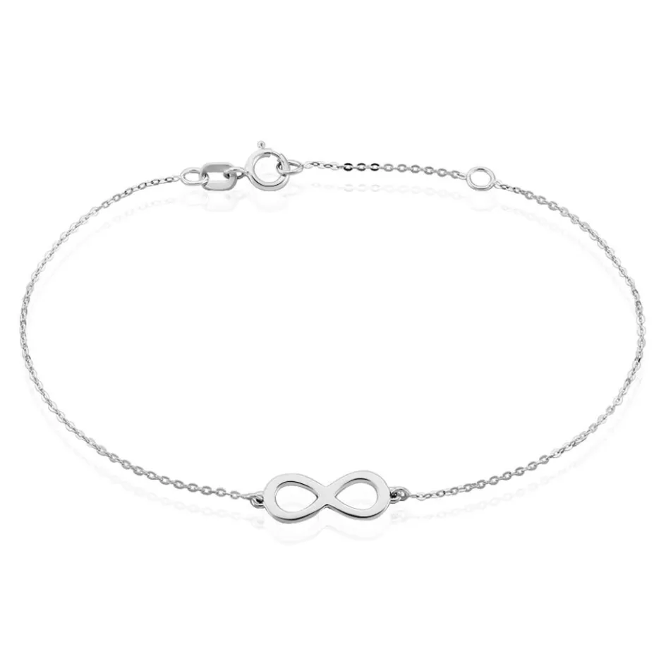 Bracelet Or Blanc 375/1000 Motif Infini Maille Jaseron 18cm