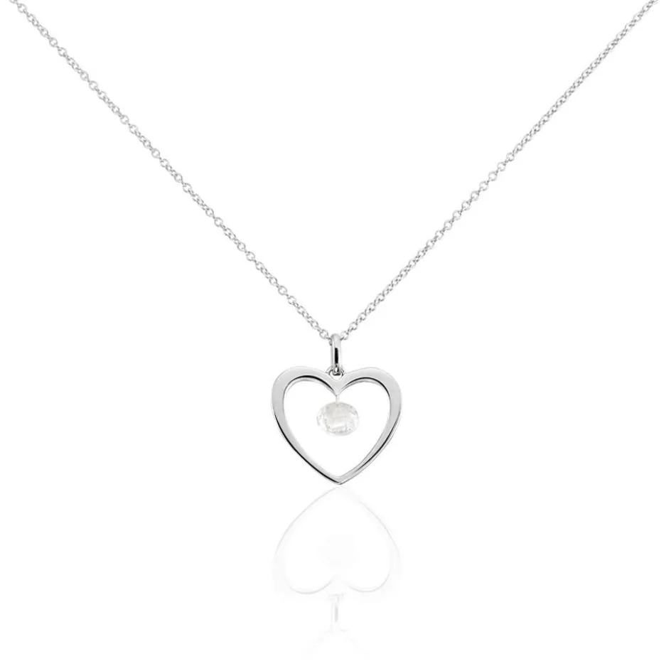 Collier Argent Blanc 925/1000 C艙ur Oxydes De Zirconium Percés Maille Forçat 45cm