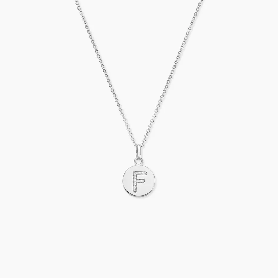 Collier Argent 925/1000 eugenien Pendentif Lettre F Pavage Oxydes De Zirconium Maille Forcat 45cm