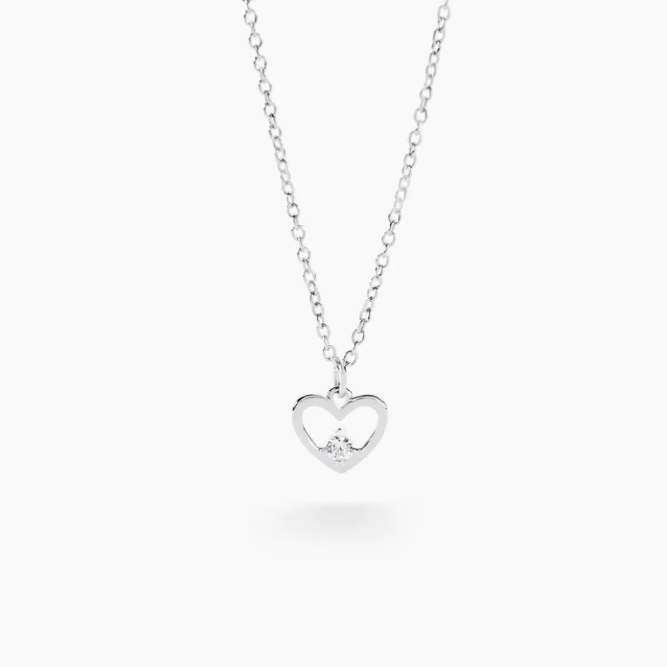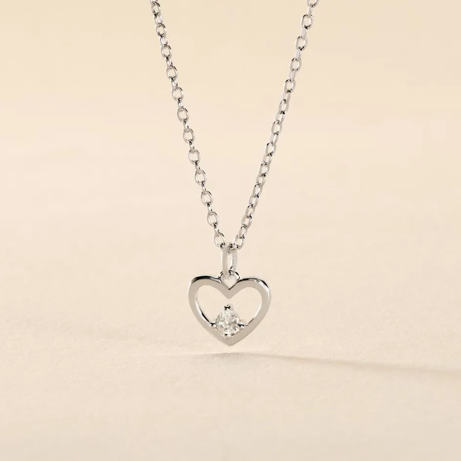 Collier Argent 925/1000 sabino C艙ur Sertis Griffes 1 Oxyde De Zirconium Maille Forcat 45cm