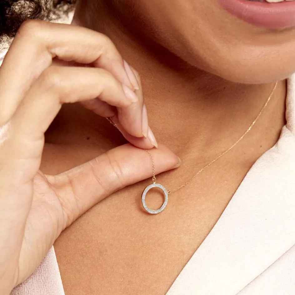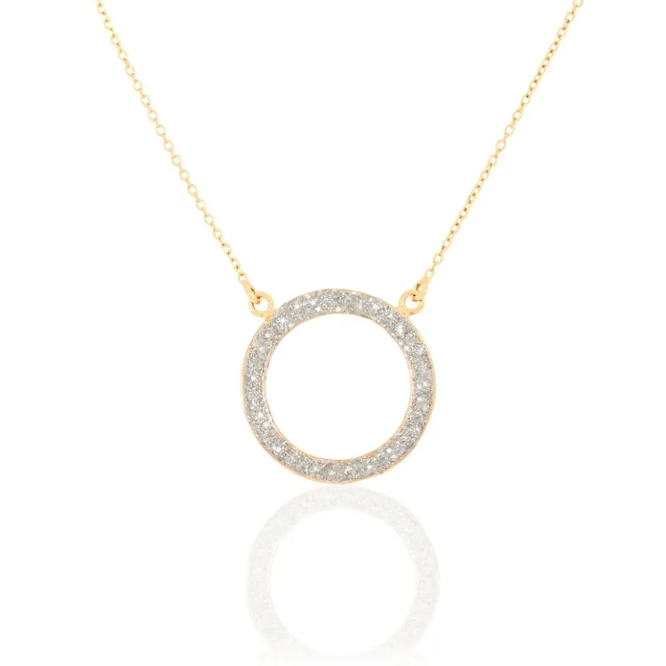 Collier Or Jaune 375/1000 Cercle Ajoure Glitter Argente Maille Jaseron 42cm