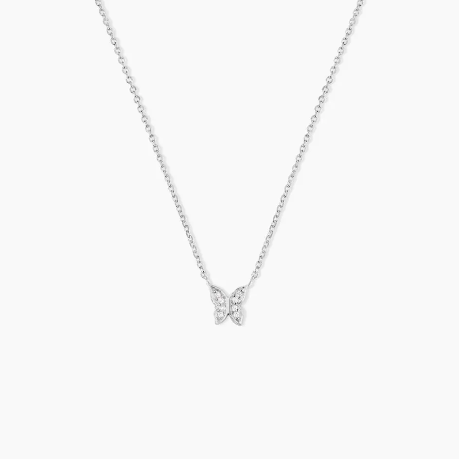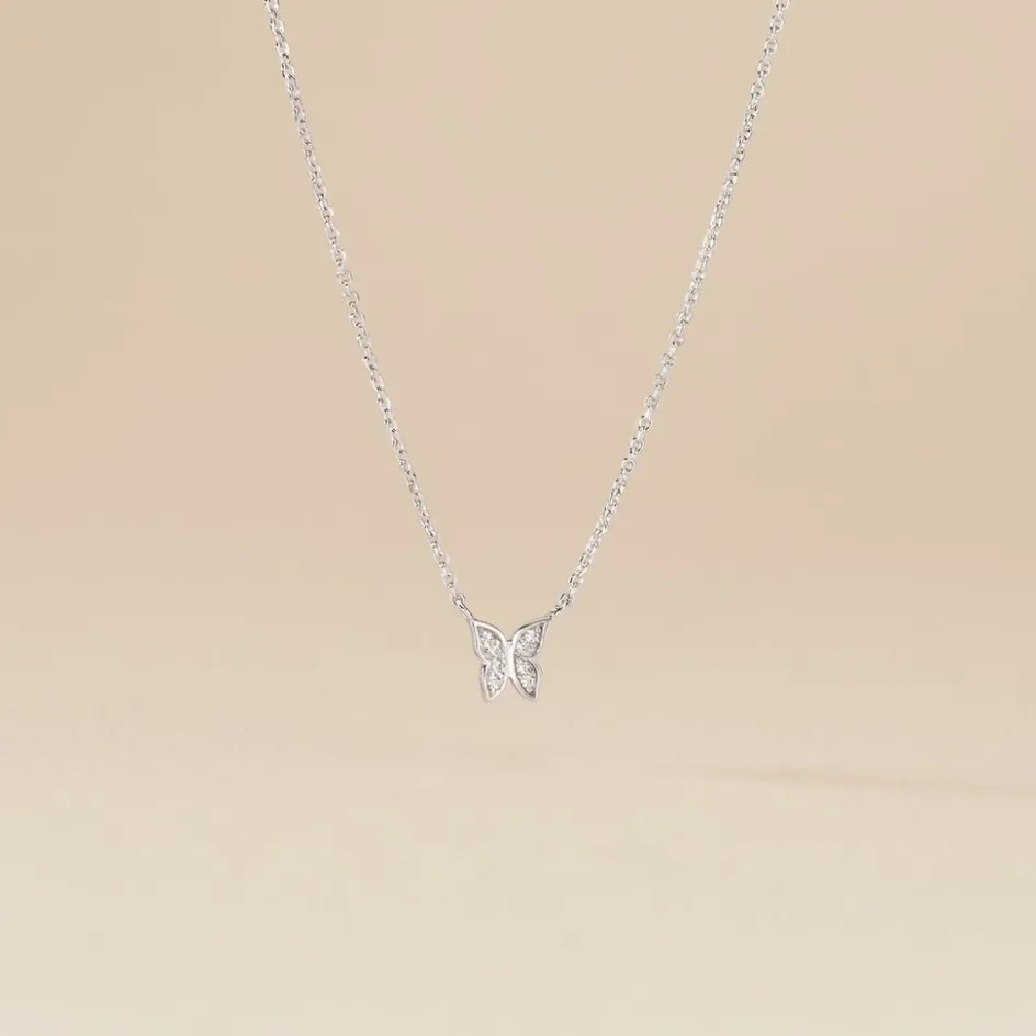 Collier Argent 925/1000 cadfan Papillon Pavage Oxydes De Zirconium Maille Forçat 45cm