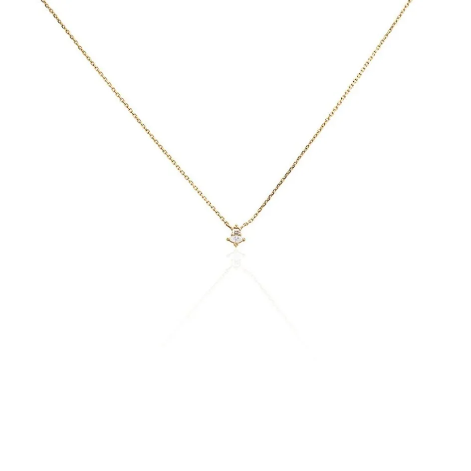 Collier Plaqué Or Barrette Art Deco Oxydes De Zirconium Effet Perle Maille Forçat 40+5cm