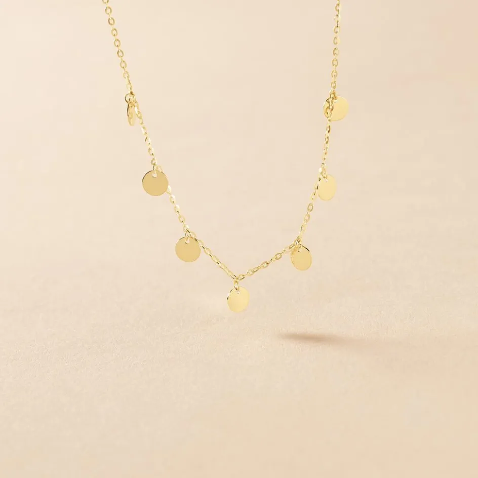 Collier Or Jaune 375/1000 Motifs Pastilles Pendantes Maille Jaseron 42cm