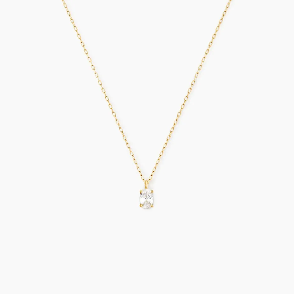 Collier Or Jaune 375/1000 Solitaire Ovale Oxyde De Zirconium Serti Griffes Maille Forcat 40+2Cm