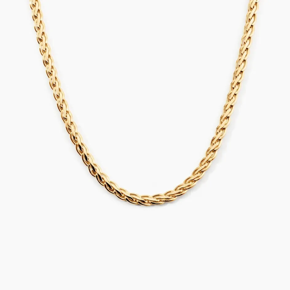Collier Or Jaune 375/1000 Maille Palmier Ecrase 3.5mm 42cm