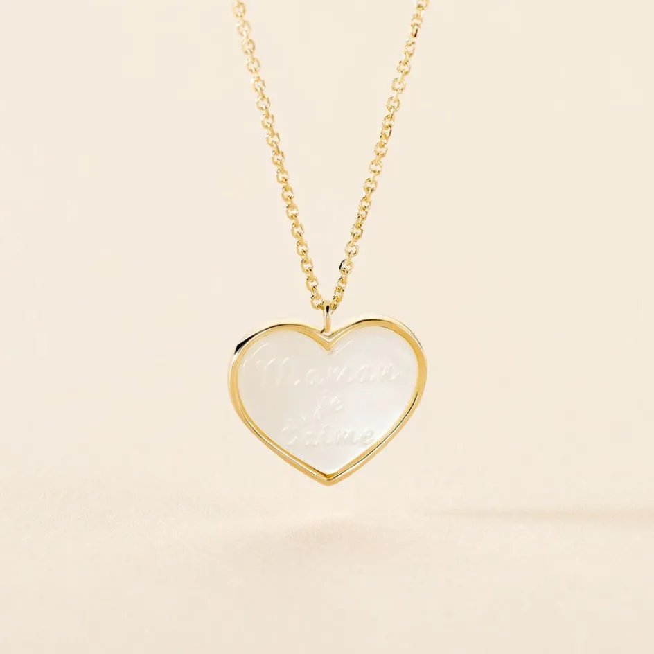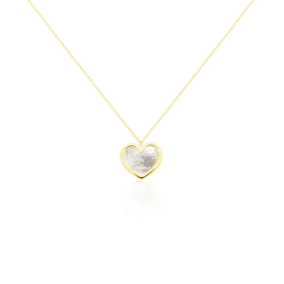 Collier Or Jaune 375/1000 C艙ur Nacre Blanche Message Maman Je T’aime Maille Jaseron 42cm