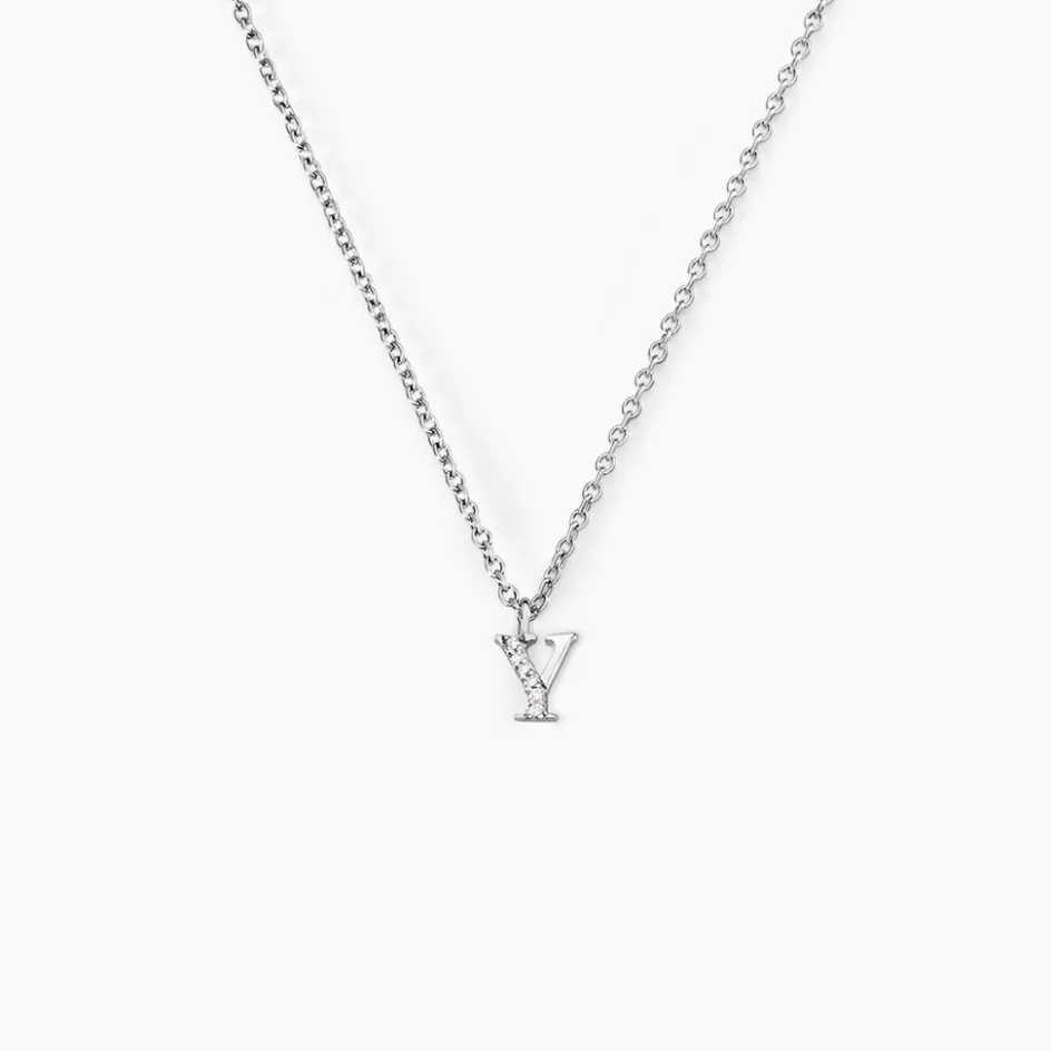 Collier Argent Blanc 925/1000 Lettre Y Semi Pavage Oxydes De Zirconium Maille Forçat 38+3cm