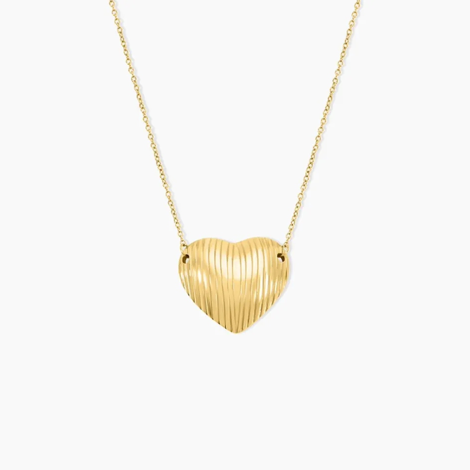 Collier Acier Jaune C艙ur Strié Maille Forcat Largeur 1.2mm 45cm