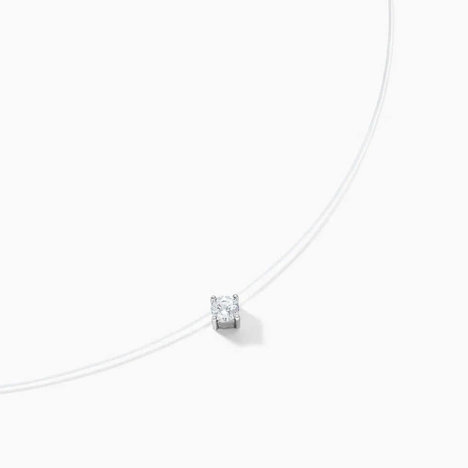 Collier Argent 925/1000 Oxyde De Zirconium Rond Serti Griffes 4mm 42cm