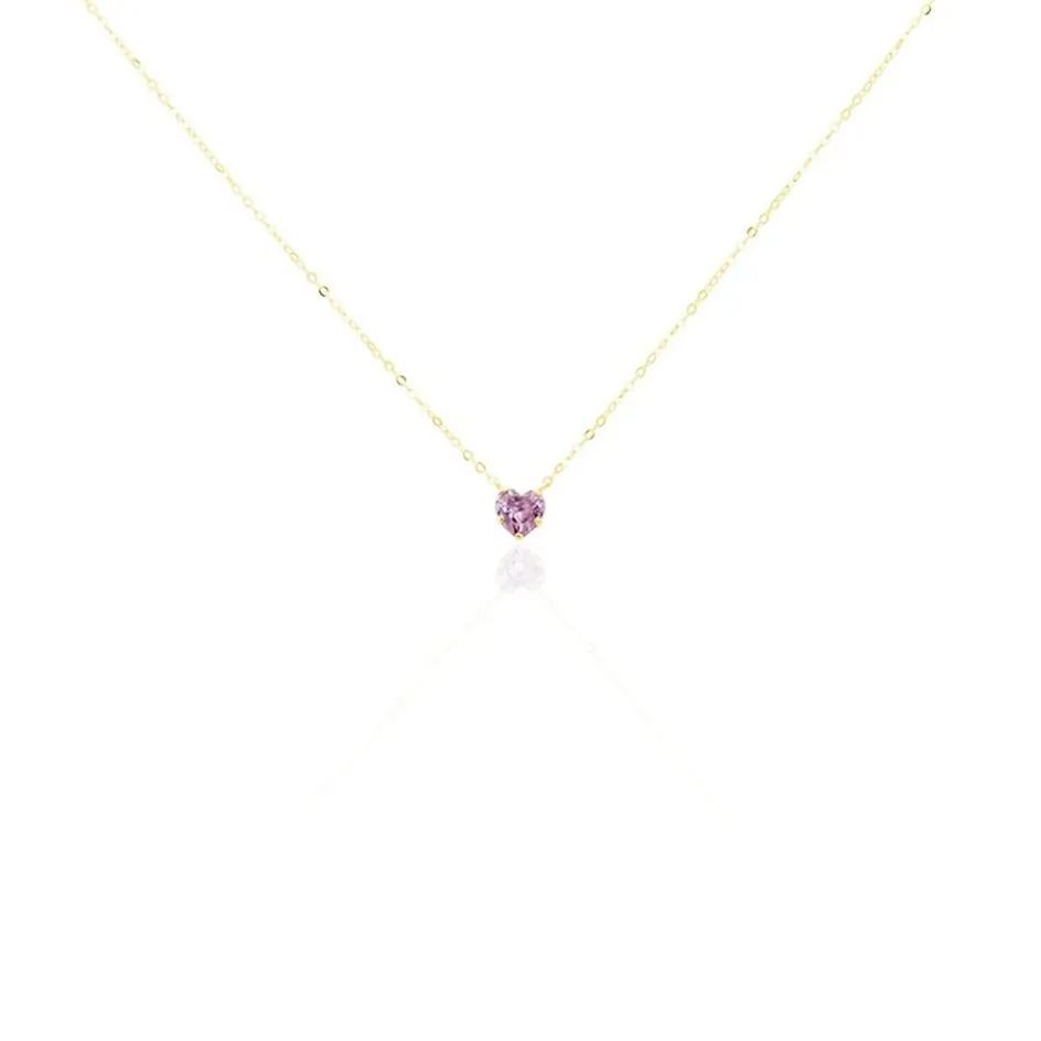 Collier Or Jaune 375/1000 Coeur Oxyde De Zirconium Rose Maille Forcat 36/38cm