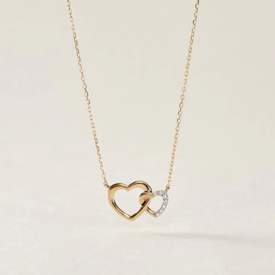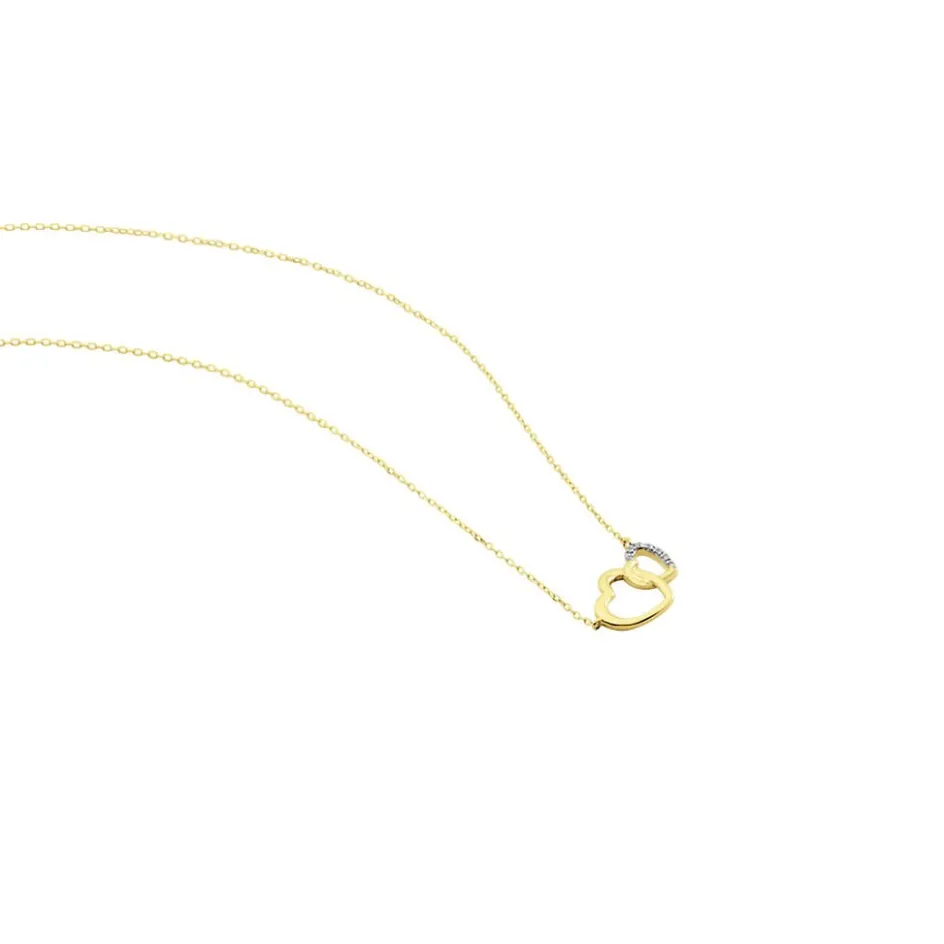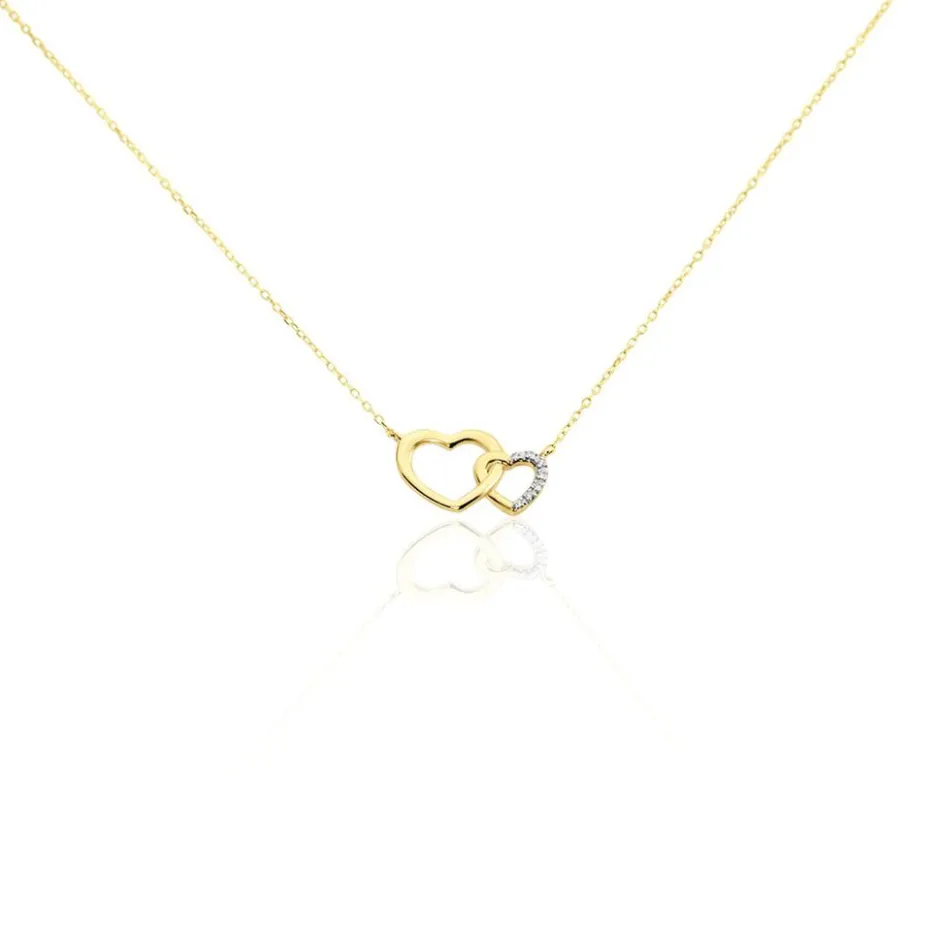 Collier Or Jaune 375/1000 Forme Double C艙ur Pavage Diamants Blancs Maille Forçat 40+2cm