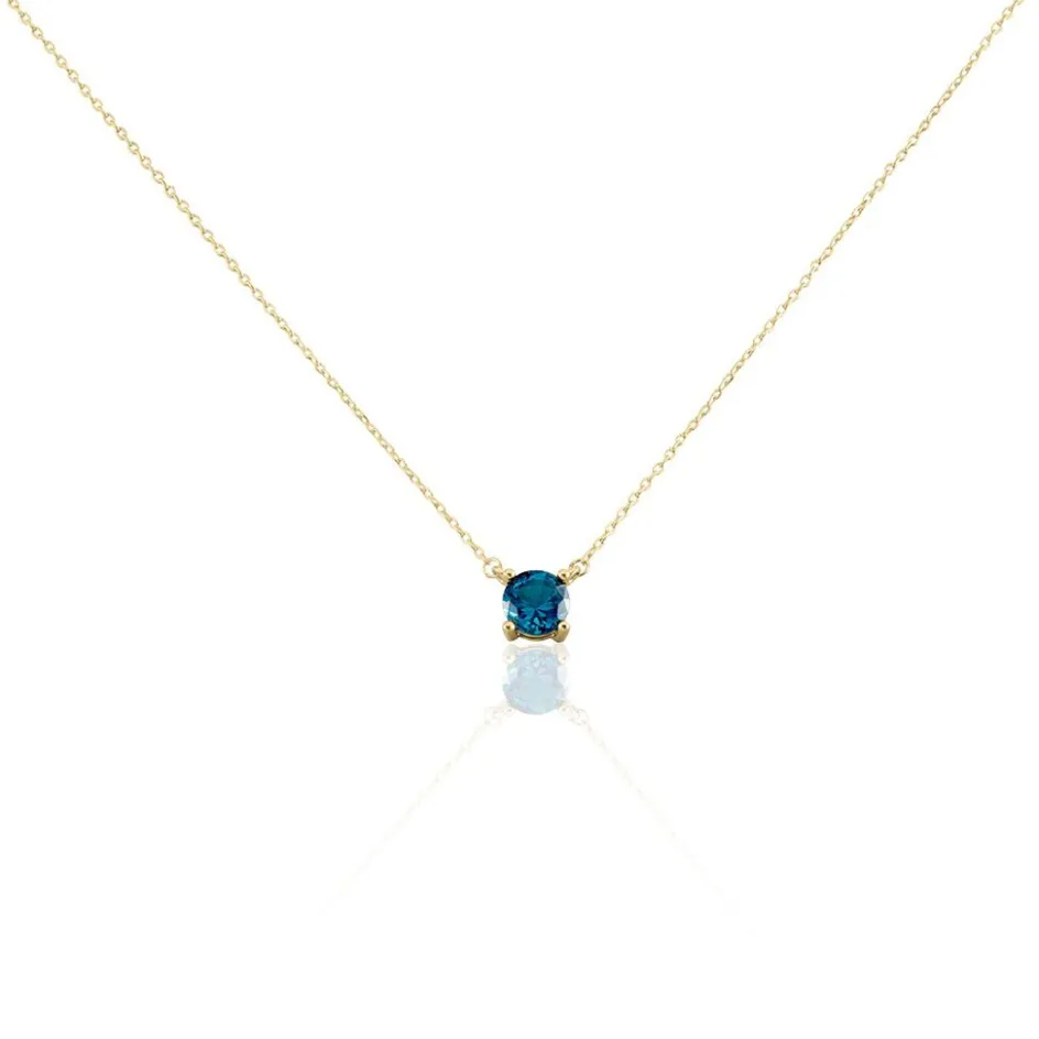 Collier Plaqué Or Jaune Oxyde De Zirconium Bleu 6mm 4 Griffes Maille Forçat 45cm
