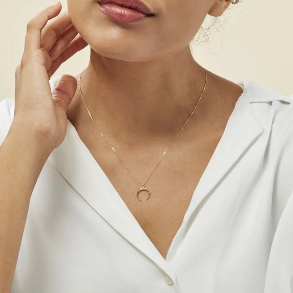 Collier Or Jaune 375/1000 Demi Lune Maille Jaseron 42cm