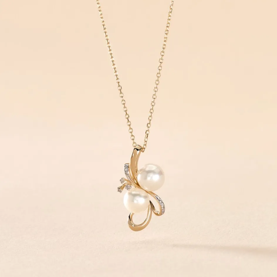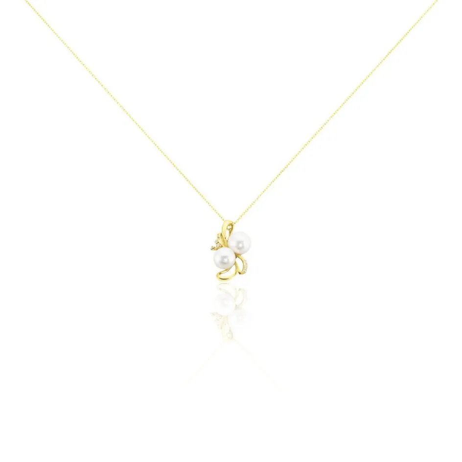 Collier Or Jaune 375/1000 Perles De Culture Rondes De 5.5/6mm Et De 6/6.5mm Et Diamants Jardin 42cm