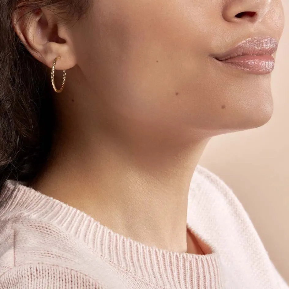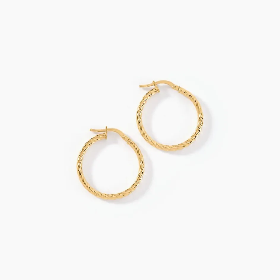 Créoles Or Jaune 375/1000 Fil Rond Torsadé Largeur 2mm Diamètre 20mm