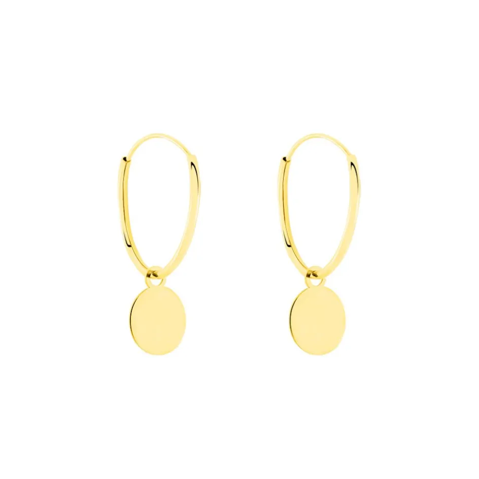 Créoles Or Jaune 375/1000 Pampilles Rondes Fil Flexible Lisse Largeur 0.8mm Diamètre 11mm