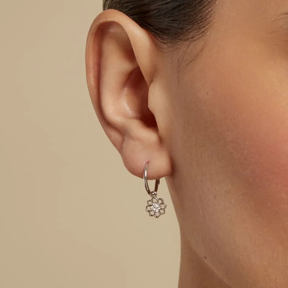 Créoles Argent Blanc 925/1000 Pastille Motifs étoiles Pavées Oxydes De Zirconium Diamètre 10.5mm