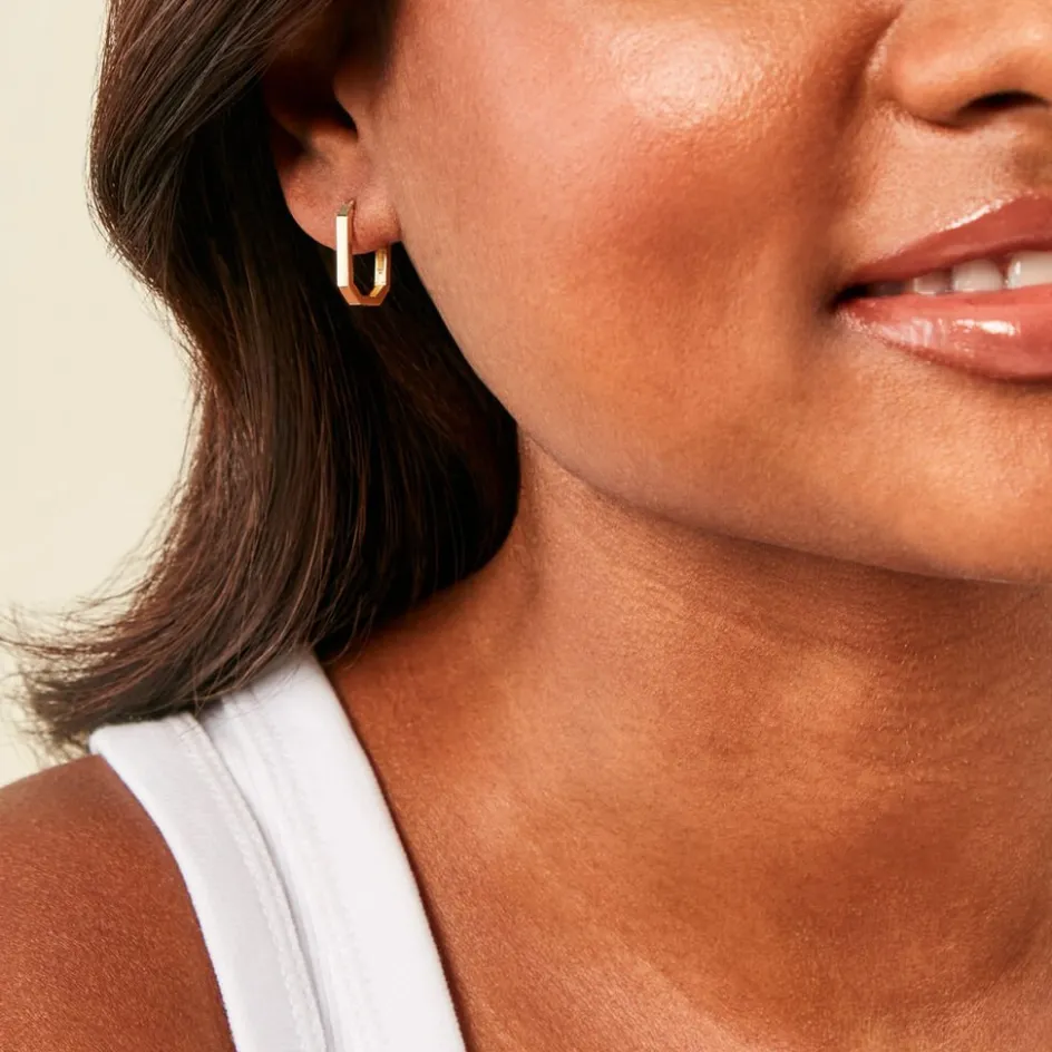 Creoles Or Jaune 375/1000 Fil Carre Lisse Octogonales 15Mm