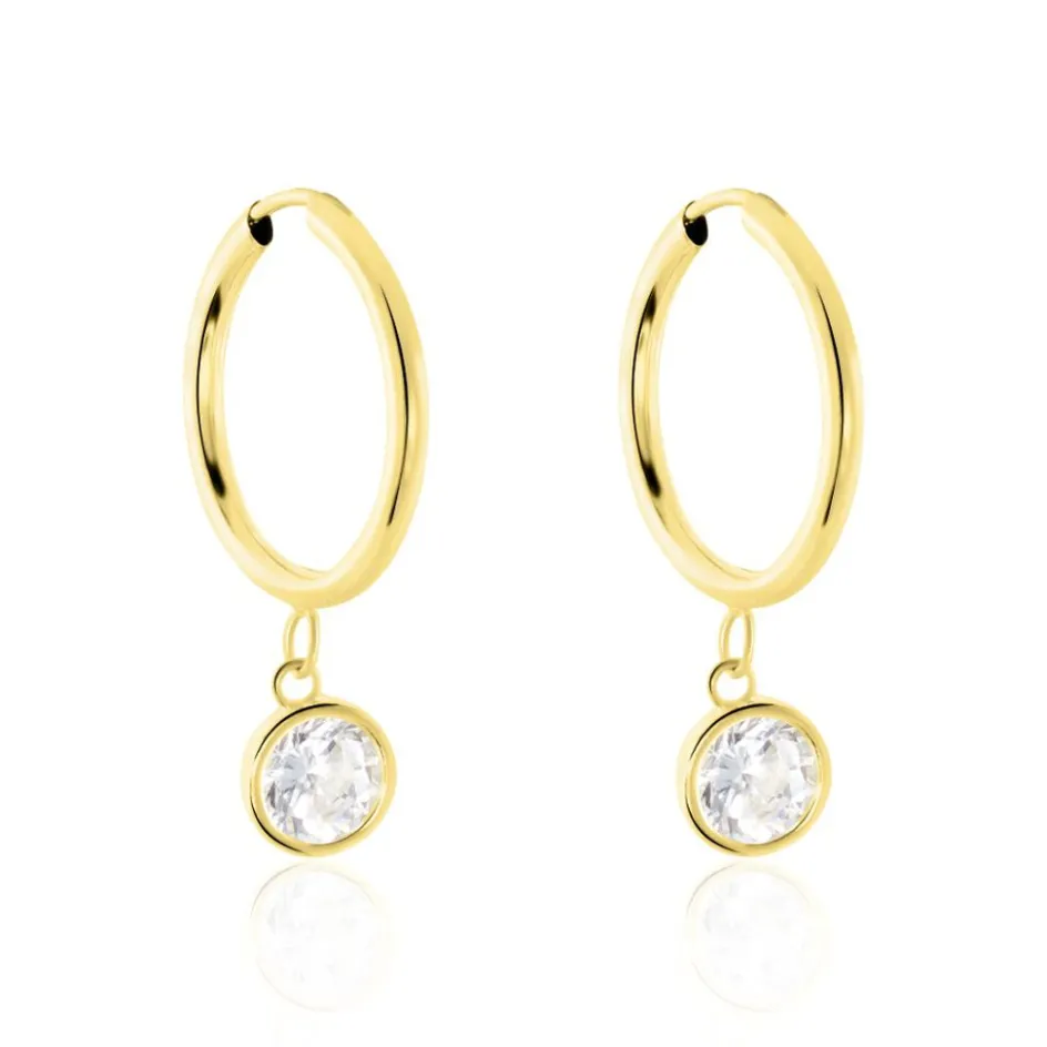 Creoles Or Jaune 375/1000 Pampilles Oxyde De Zirconium Serti Clos Gm
